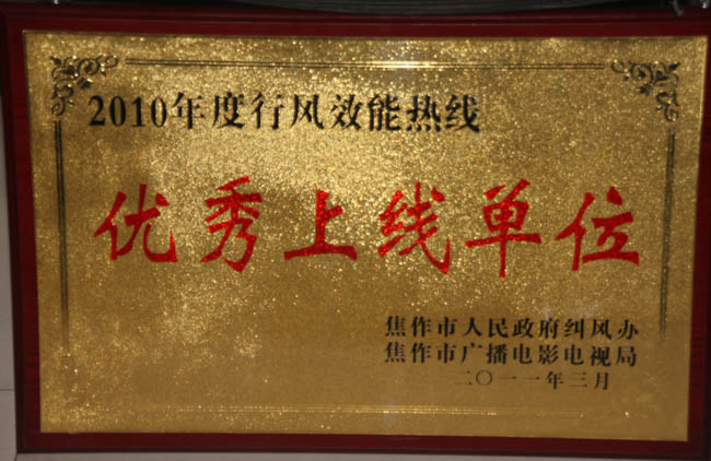 根据市纪委、监察局、纠风办、广电局等部门工作安排和群众关注的热点问题,绿源热力公司积极按照《行风效能热线》的通知安排,把认真解决群众反映的问题放在工作的第一位,积极解决民之所急,在2010年《行风效能热线》中荣获优秀上线单位荣誉。