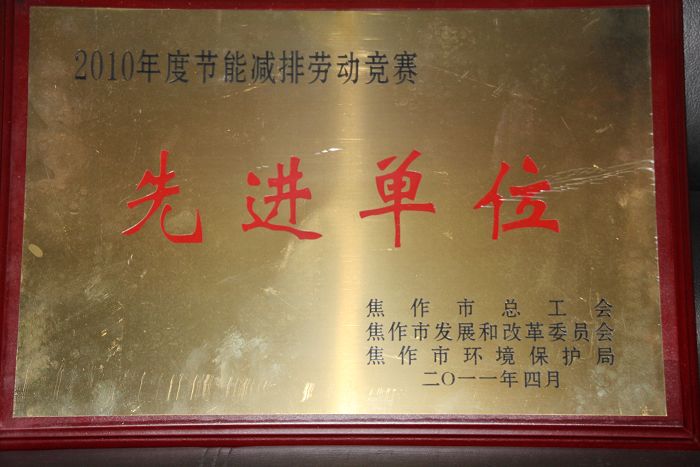 市绿源热力有限公司荣获市总工会、市发展和改革委员会及市环境保护局颁发的“2010年度节能减排劳动竞赛先进单位”荣誉。