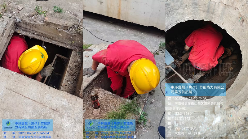炎炎夏日,焦作公司热力人的工作热情如同室外的气温一样高涨,各项“冬病夏治”工作都在有条不紊、紧张繁忙的进行着。非采暖季的维检修工作,有一项必不可少的工作就是对热力阀门井进行检修,只有确保阀门使用正常,保温完善,才能为冬季供暖打下基础。每天都会有运维人员打开热力井盖,进入分布着热力管道的井内作业。井下最深处可达地下四五米,有的井中还有积水,夏日里,本就狭窄黑暗的井内更加闷热潮湿,甚至还夹杂着刺鼻的味道以及苍蝇蚊子小飞虫和老鼠,一般人下去别说是下去干活,就是待上几分钟也会汗流浃背,恶臭和闷热让人憋得透不过气来。但供热人从来无惧严寒酷暑,下井作业最注重安全,在井下通风完毕,气体检测合格后,穿着工作服和安全帽在井里一待就是一个钟头。浅一些的井内空间狭小,连弯腰都很困难,为了更换阀门,只能半蹲在里面,切割、焊接,一个作业流程下来,贴身衣服全部湿透,腰也累得直不起来了。有时候几个检修工轮流下井,轮换作业,其中付出的艰辛,只有亲历者才有体会。