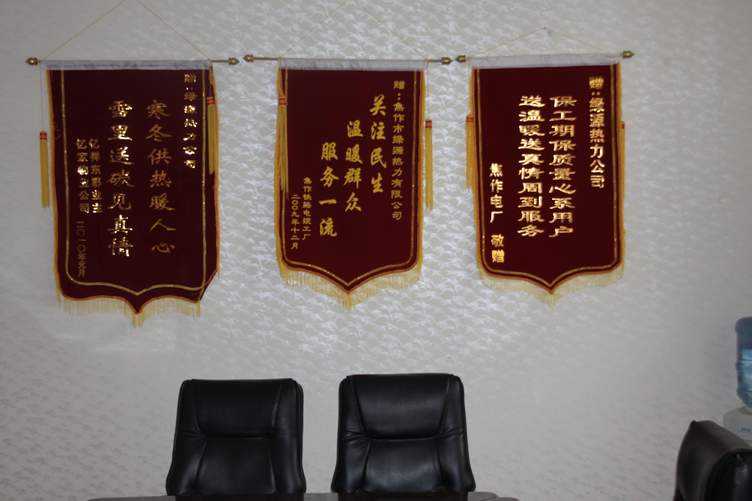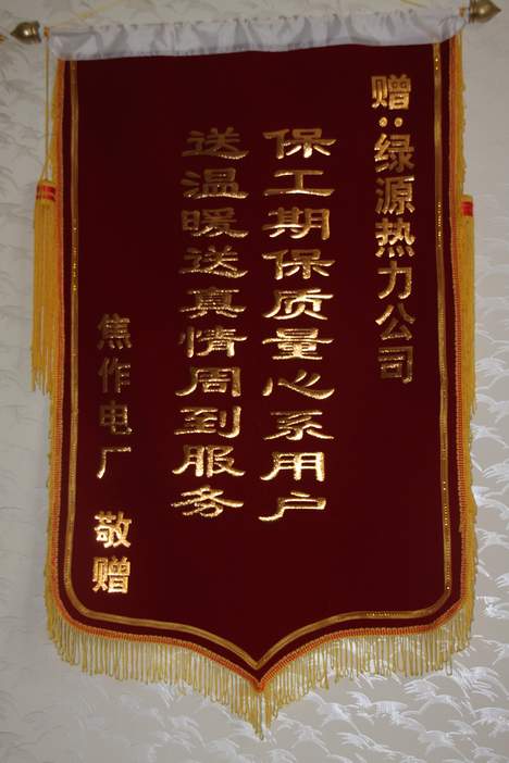 为了使电厂居民过一个温暖祥和的春节,绿源热力有限公司和电厂小区双方共同努力,加班加点,克服重重困难,赶在大年三十当天实现了电厂小区正式供暖。电厂领导为了表示感谢之情,在春节过后上班的第一周就向绿源公司赠送了锦旗!赞扬绿源公司“送温暖送真情周到服务,保工期保质量情系用户!”