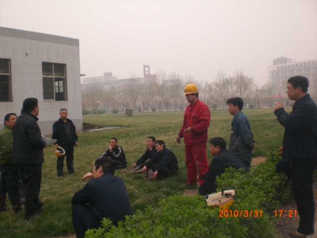 3月31日,生产科安排公司安全员,在焦作大学施工现场,召开检修工作现场安全会。会议首先对一线员工进行了安全知识、安全技能培训,同时叮嘱广大员工,检修工作虽然时间紧任务重,但是,应始终坚持把保证安全放在第一位。最后,针对具体工作内容提出了20点要求。