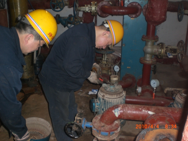 4月4日,李虎组比原计划的4月6日-9日,提前2天进驻碧海云天小区,开始了碧海云天小区换热站的检修工作。4月6日-9日,张小仓组进行景苑小区换热站检修。