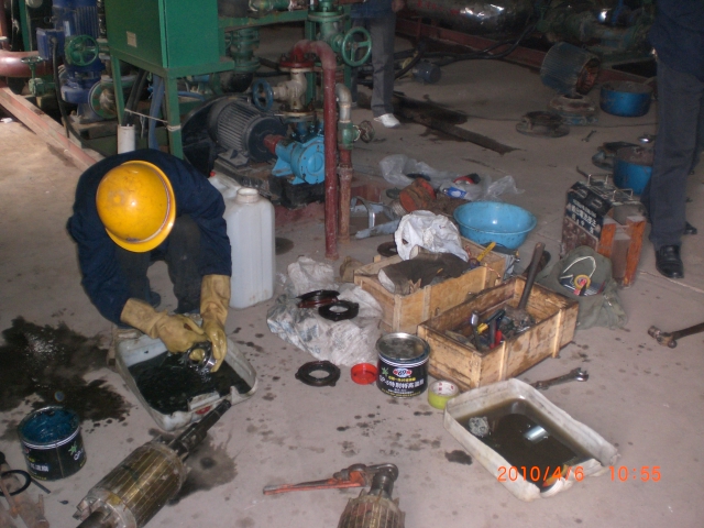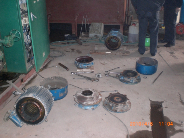(3)对所有循环泵拆开,检查水泵叶轮是否磨损,是否需更换;同时检查水泵电机轴承,先清洗,然后判断是否磨损,更换,最后再重新加黄油安装;