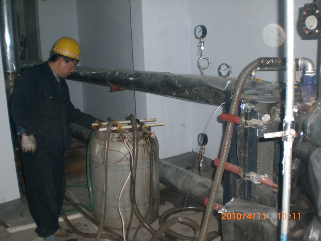 (1)板换进行清洗并用YZ—101除垢剂进行湿法保养;