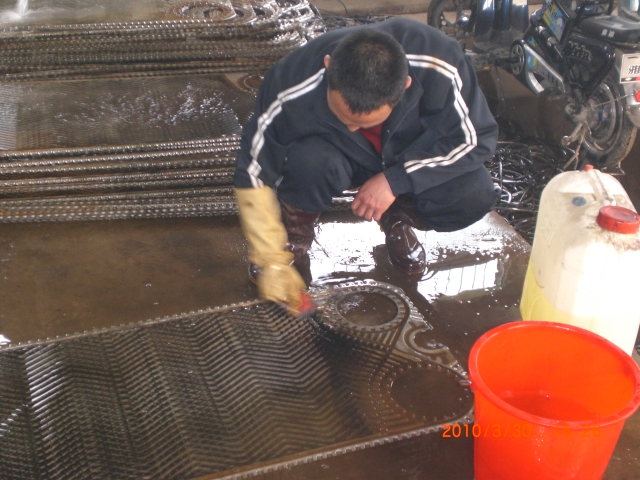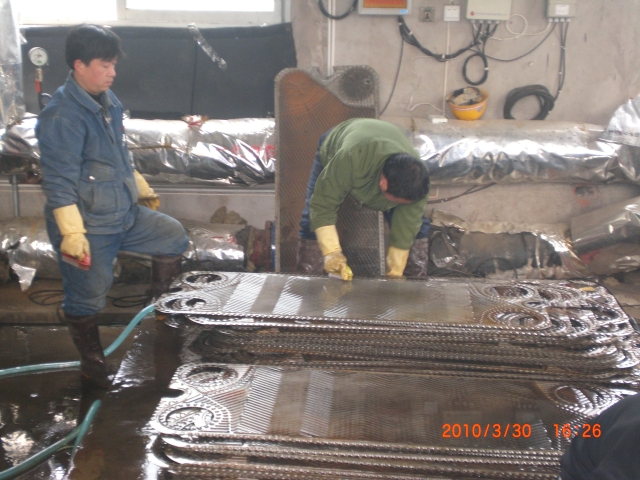(1)板换进行清洗并用YZ—101除垢剂进行湿法保养;