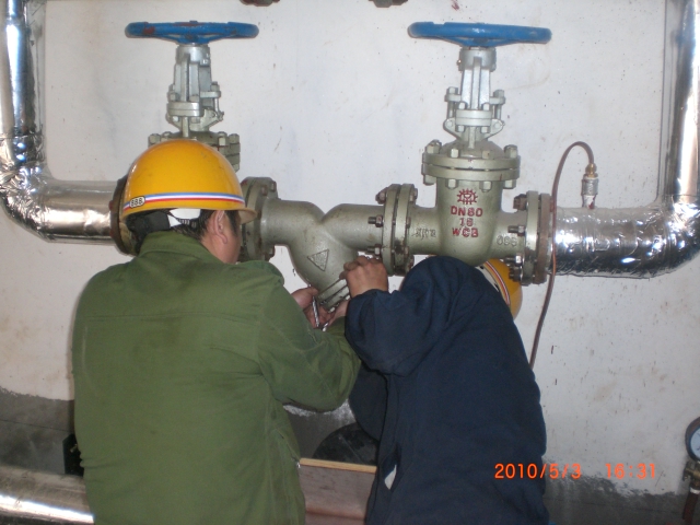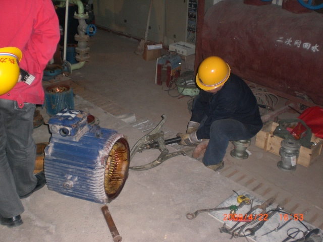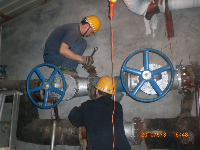 李虎组4月28日上午锦祥花园小区换热站检修结束。4月28日下午到技术监督局换热站检修。除正常检修水泵,板换,配电柜,除污器外,还要更换8个DN200截止阀,2个DN150截止阀。截至5月7日,换热站的检修工作一切都依原计划顺利进行。