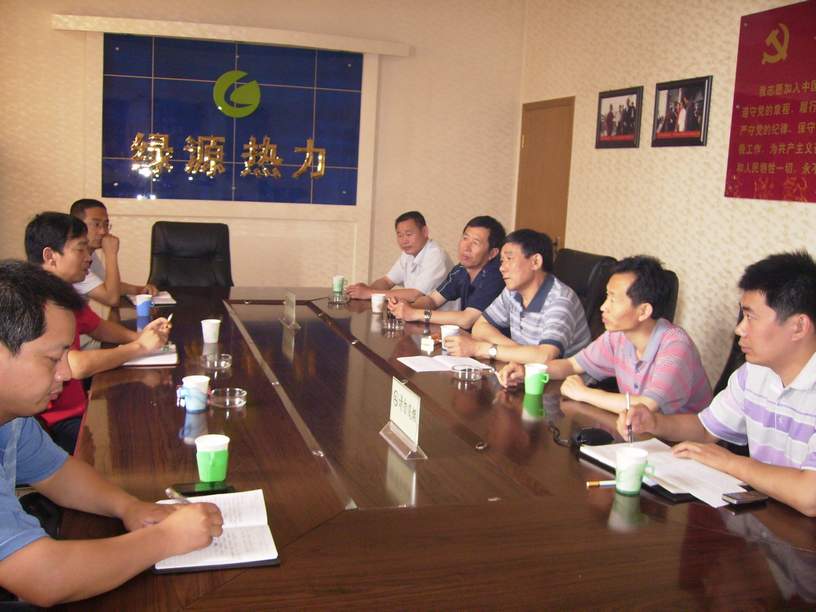 2010年6月11日,平顶山新城区热力分公司一行5人来到焦作市绿源热力有限公司考察。两公司就热量表分户计量、换热站建设及公司日常管理等进行了交流,绿源热力公司应平顶山新城区热力分公司请求,提供了政府有关供热的收费文件、公司应急预案和管理制度,平顶山新城区热力分公司到绿源热力公司热量表安装现场和换热站进行了参观。