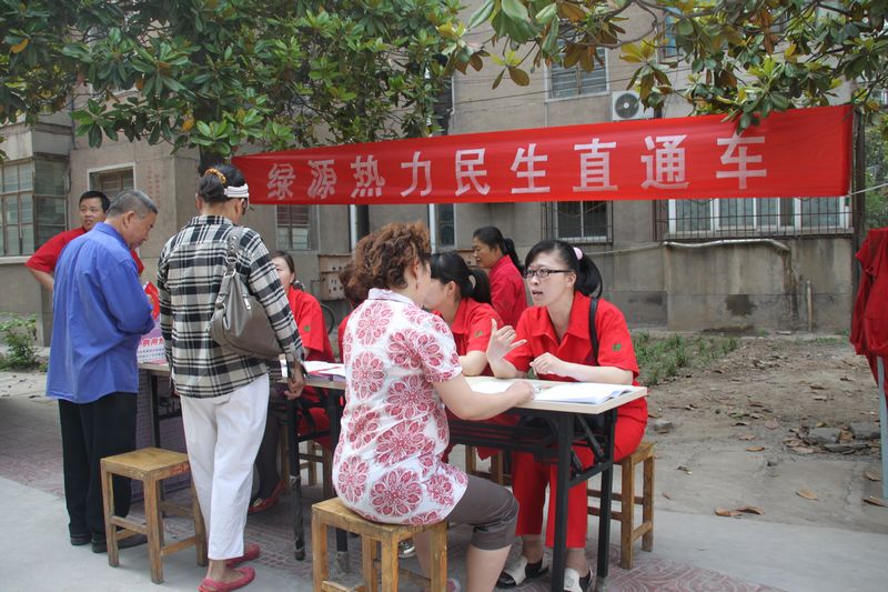 按照公司领导“ 听民生、知民意、解民难”的指示精神,5月28日,由绿源公司民生办、报修中心、经营科、审批科共同组成的绿源公司民生直通车来到电建家属东院,来到用户中间,与用户零距离,面对面,宣传用热常识、解决用户用热过程中遇到的实际问题。