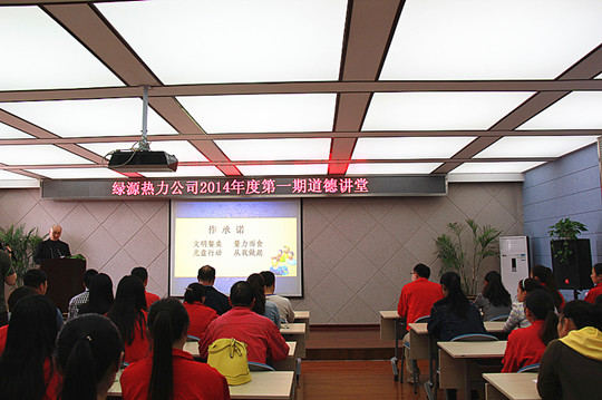 为大力弘扬中华民族传统美德,切实加强职工的思想道德建设,深入开展文明单位的创建工作,绿源热力有限公司于2014年4月30日下午2:30在公司二楼会议室开展2014年第一期“道德讲堂”活动。