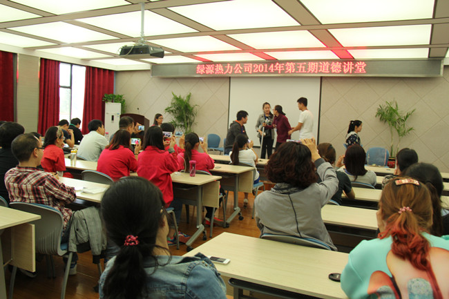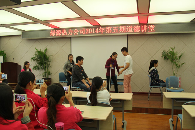 本期道德讲堂共分为五个环节,第一环节是播放歌曲《文明在哪里》,以歌唱的形式传递生活中文明礼仪,告诉我们文明礼仪就在身边,在我们生活中随处可见。随后第二个环节是公司员工自导自演的小品《让座》。小品演绎了发生在我们身边的文明礼仪故事,风格幽默风趣赢得了大家阵阵喝彩。文明礼仪小到一言一行,大到做人的基本原则。紧接着在第四环节中播放的微电影《承诺》感动了所有在场人员,也让我们明白了“诚信“的重要意义。社会的进步,靠的就是诚信。在活动的第四环节讲述了发生在我们身边的好人好事,对公司员工邢拥军凡人义举的先进事迹进行了讲述。并号召大家弘扬正能量,以他为榜样,爱岗敬业,争做好人好事,为公司文明建设多作贡献。其后公司部分员工进行了发言,就本期道德讲堂活动的主题和内容谈了自己的感想,纷纷表示要向榜样学习,争做讲道德、讲正气的文明人。