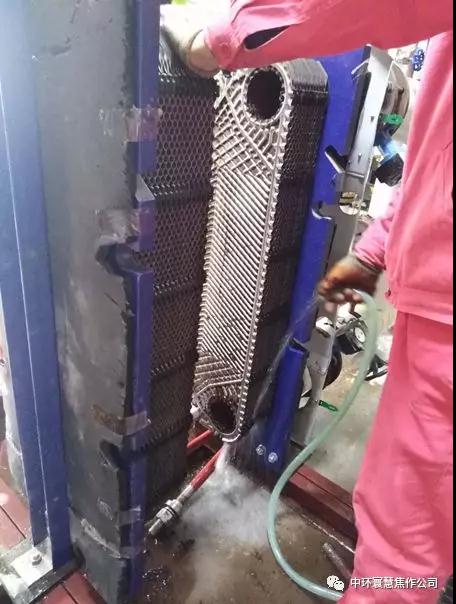 图为焦作公司检修人员冲洗板换