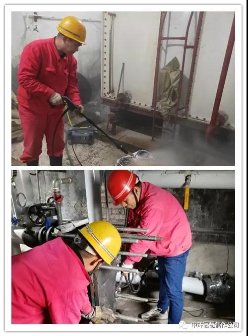 图为中环寰慧焦作热力公司检修人员正在紧张检修换热站换热器
